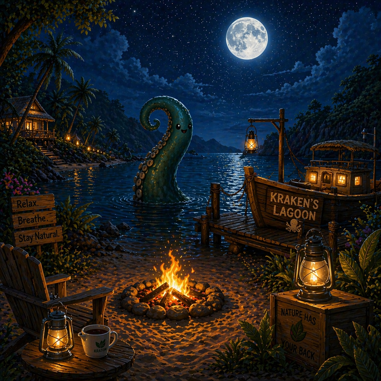 Kraken’s Lagoon is our private Facebook group — a cozy little corner of the internet built for our community. It’s where we share product news, real talk, deals, strain chatter, stories, memes, and the occasional unhinged kratom opinion. No shadow bans, no mysterious disappearances, no waking up to find our page has been vaporized overnight.